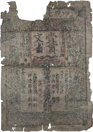 Китайская ассигнация стоимостью в одну связку. Китай, Тангутское государство Си Ся, Хара-Хото. XIII — XIV вв. Фото: Государственный Эрмитаж